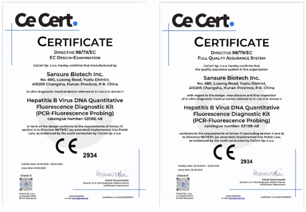 5月20日,yabo鸭脖官网生物自主研发的乙型肝炎病毒核酸检测试剂盒(PCR-荧光法)、丙型肝炎病毒核酸检测试剂盒(PCR-荧光法)和人类免疫缺陷病毒1型核酸测定试剂盒(PCR-荧光探针法)成功通过欧盟公告机构认证(CE IVDD List A),成为中国第一家核酸检测试剂荣获欧盟CE最高认证的企业。